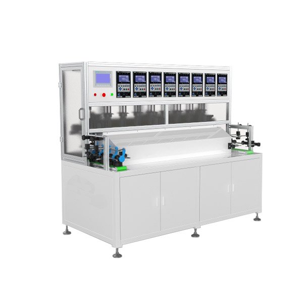 结构原理:阀门自动测漏主要由: 上料组件、上下料机械臂、侧漏压机、关阀组件、下料缓存线、机械臂机架组成。工作流程:人工将需要测漏的阀门放入入料口,启动设备,机械臂A爪依次抓取阀门放入六个测漏工位,测漏工位依次开始开阀测试,如合格,程序便启动关阀机构,将阀门关闭,进行关阀测试,如不合格,机械手B爪便会该阀门取出,A爪接着将待测的阀门放入该测漏工位,B爪再将放入不合格料仓,A爪移动至取料口,抓取阀门待测。当关阀测试完成后,程序以上述动作顺序循环工作。如关阀开阀都测试合格,B爪将合格的阀门放入下料缓存线,缓存线将阀门输送至取料口。