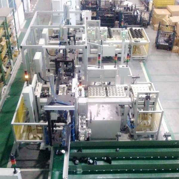 工作原理简介:发动机风扇支架的自动化装配线通过相应的输送线和专机系统共同完成风扇支架本体识别抓取、本体移载定位;卡簧防错分拣、卡簧压装;轴承输送定位、轴承压装检测;轮毂识别抓取、轮毂移载定位、轮毂压装并检测;座圈分离输送定位、螺栓输送定位、螺栓拧紧并检测;成品高速旋转测试、合格品不合格品区分移载下线等;各装配工位之间使用全自动高速机械手物流周转、定位、判别、信息交互等,自动化智能化完成发动机风扇支架装配。